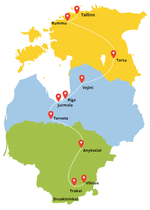 - After a long day of adventures and exploration, relax at various SPA hotels with water amusement parks in Druskininkai, Anyksciai, Jurmala, Parnu and others.