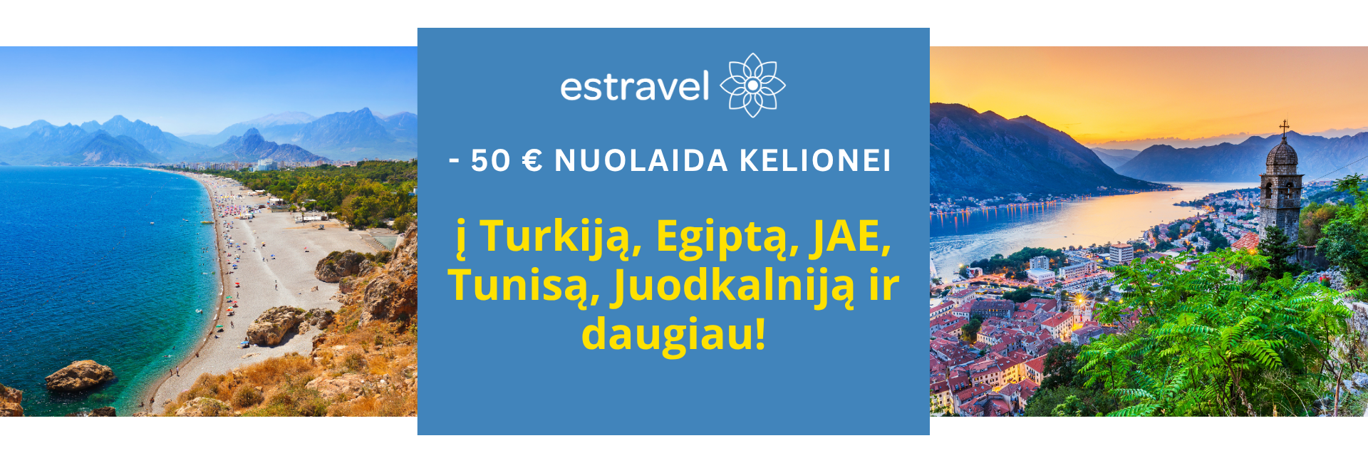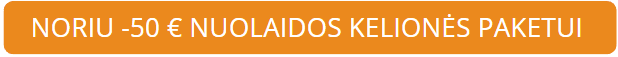 - 50 € nuolaida* vienai rezervacijai kelionių paketams į Turkiją, Egiptą, JAE, Tunisą, Juodkalniją ar tolimas egzotines kryptis.