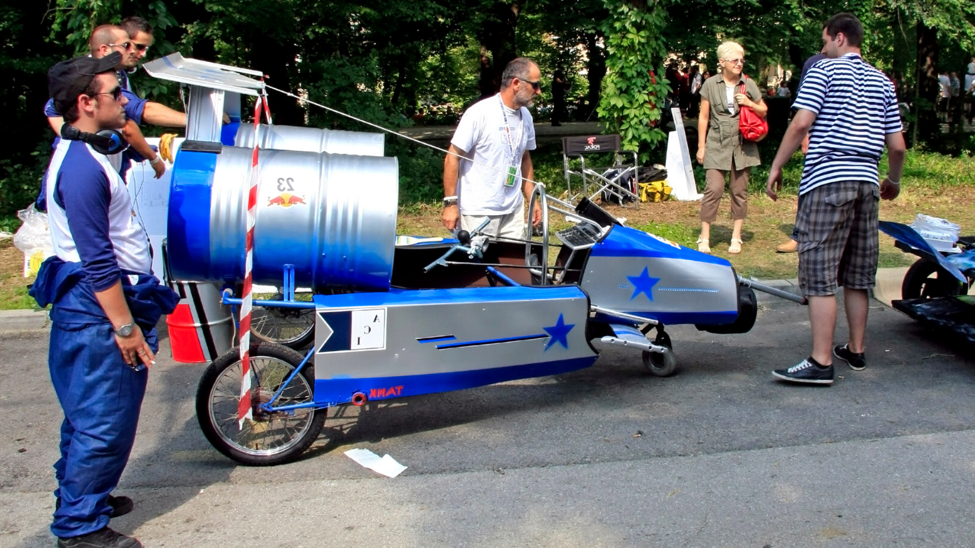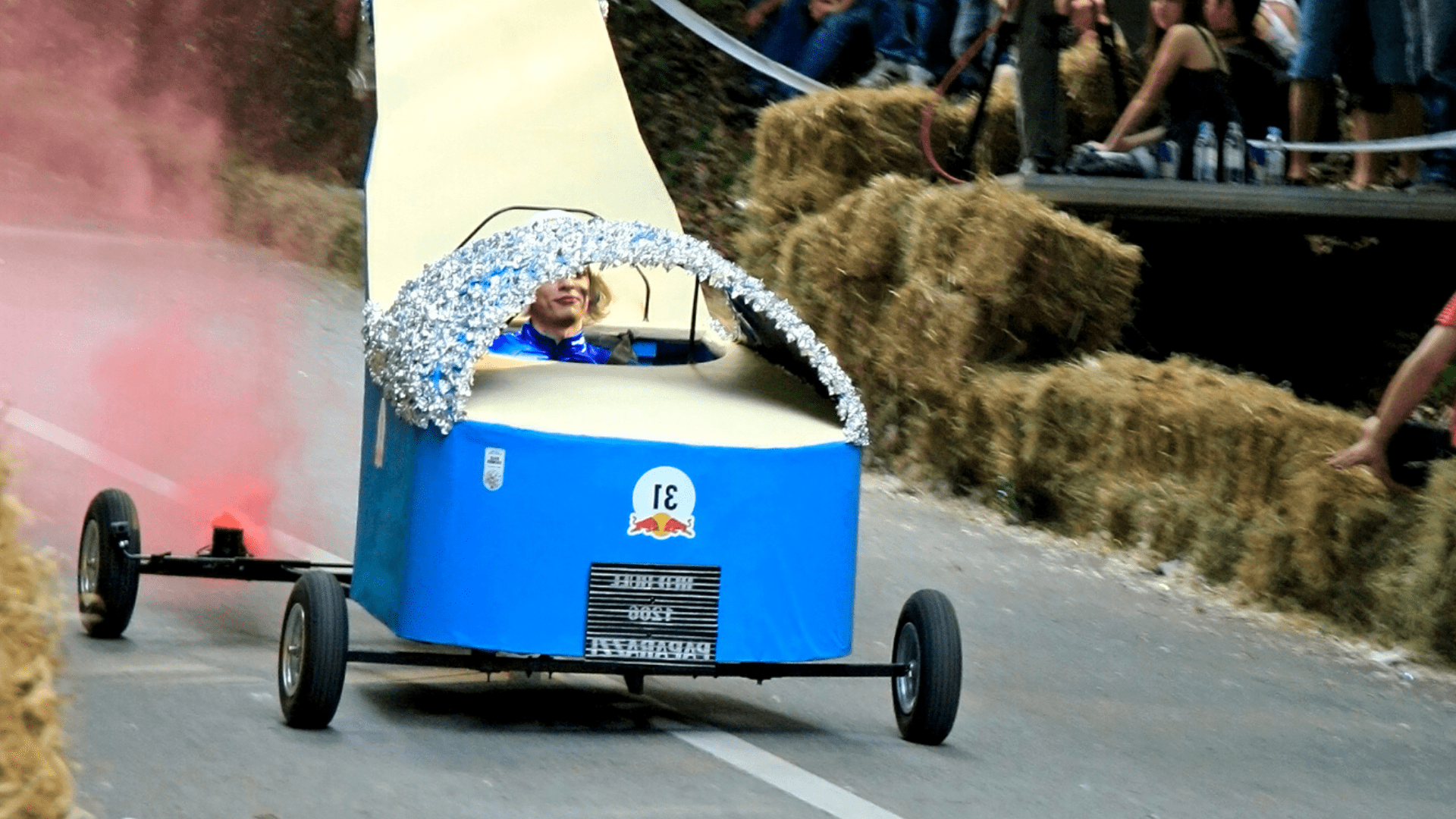 Testiniai užvažiavimai jau parodo, kas “sukčiavo” gamybos metu, tad prie pagrindinio starto trečiajame etape stoja tik laimingiausieji. Dvivietį kartą valdo ne tik vairuotojas, bet ir jį stumiantys asistentai.