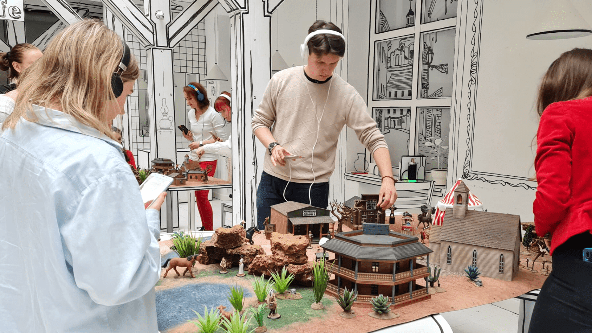 profesionalus moderatorius, interaktyvus miniatiūrų maketas, mobilieji įrenginiai, ausinės |