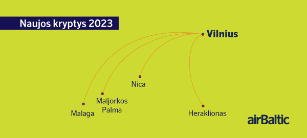 Džiugios naujienos – net 18 naujų skrydžių krypčių 2023 vasaros sezonui! Iš jų net 4 kryptis galėsite pasiekti tiesioginiais skrydžiais iš Vilniaus, į kurias skraidins mūsų partneriai airBaltic. O tai reiškia, kad keliautojams atsiveria daugiau ir patogesnių vasaros atostogų galimybių.