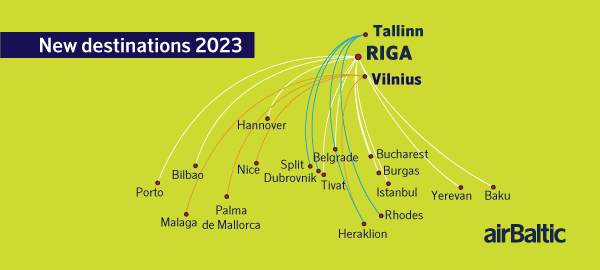 Tiesioginiai airBaltic skrydžiai 2023 m. vasarą iš Rygos