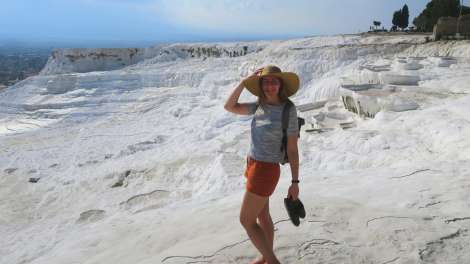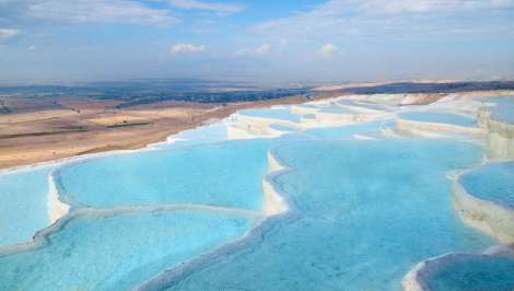 - Pamukalė — bene populiariausia tarp keliautojų Turkijoje vieta — baltos mineralinės terasos šalia istorinio Hierapolio miesto.