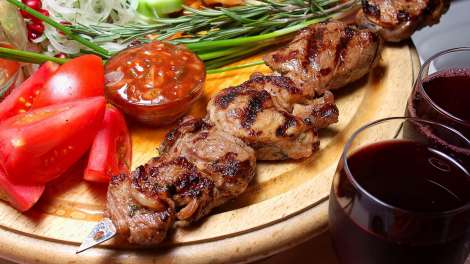 - Šiš kebabas – ant iešmo grilyje kepti ėrienos arba vištienos gabaliukai, patiekiami su pomidorais, svogūnais ir paprika.