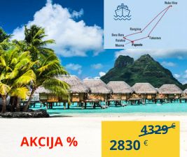 Unikali galimybė: įspūdinga nuolaida Oceania Cruises ekskliuzyviniam kruizui po Prancūzijos Polineziją, aplankant Bora Borą, Taitį ir 5 unikalias salas. Jau įskaičiuotas maitinimas, pramogos laive, Wi-Fi ir daugiau. Džiaugiamės, kad esame oficialūs šios kompanijos atstovai Lietuvoje ir galime Jums pasiūlyti tokius įspūdingus kruizus. |