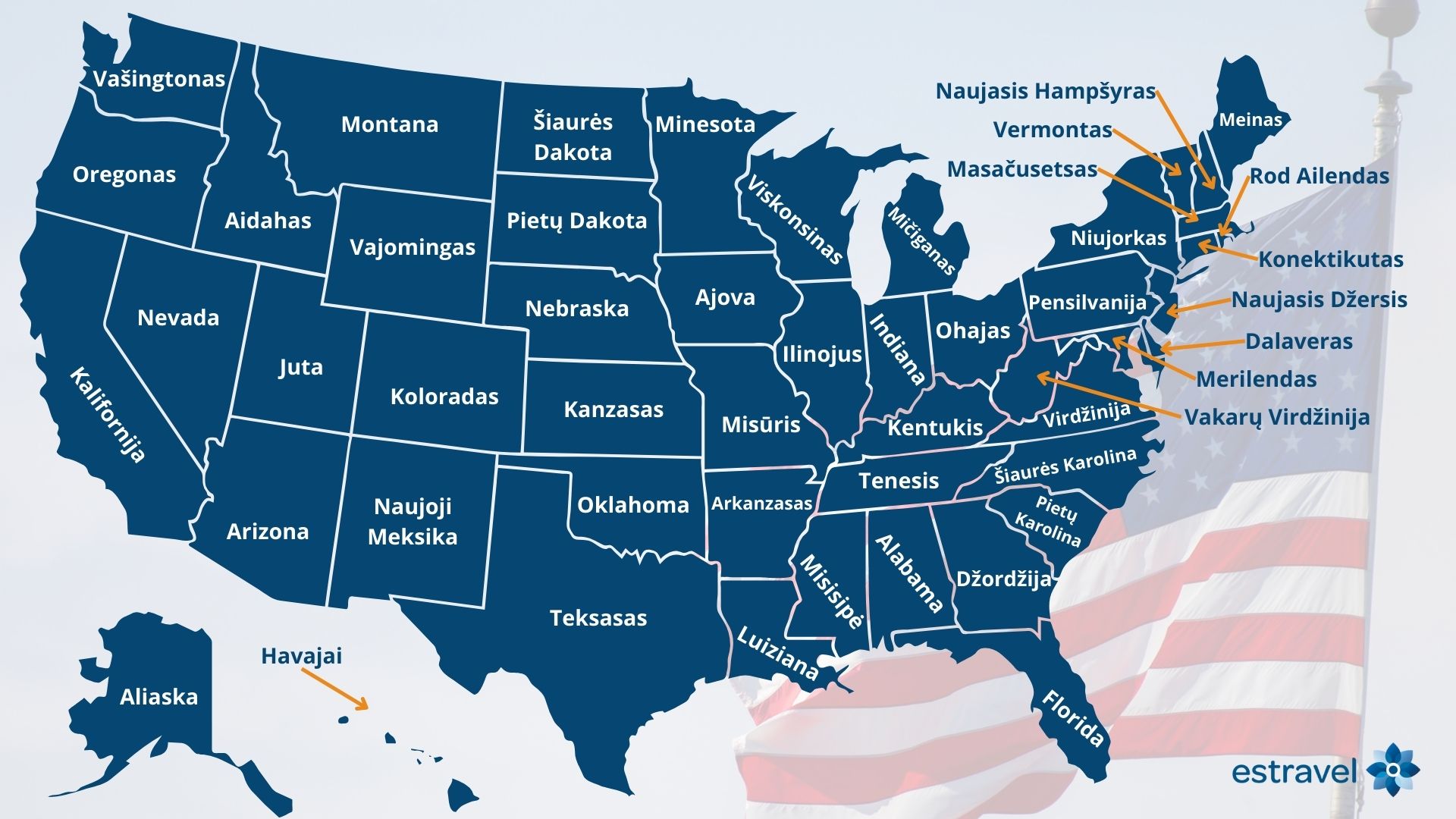 JAV valstijos, kurias aplankysite Estravel planuojamų kelionių metu