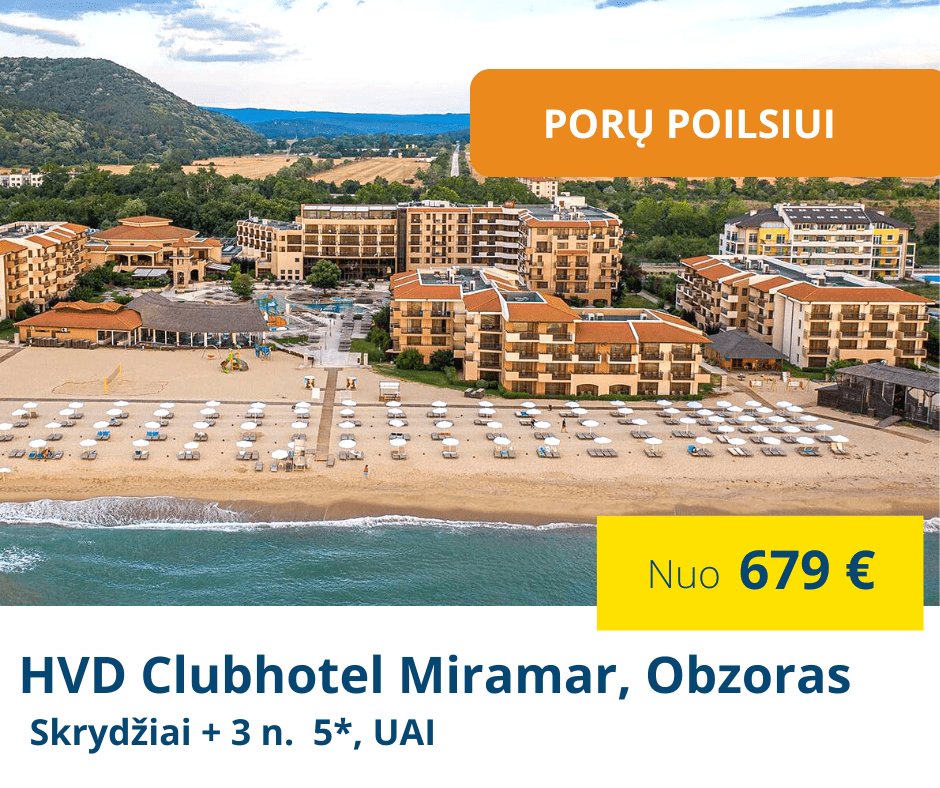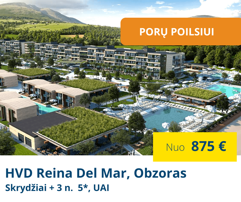 • Pradinė įmoka – 75 €/asm. Likusi kelionės suma sumokama ne vėliau kaip likus 28 d. iki išvykimo į poilsinę kelionę.
