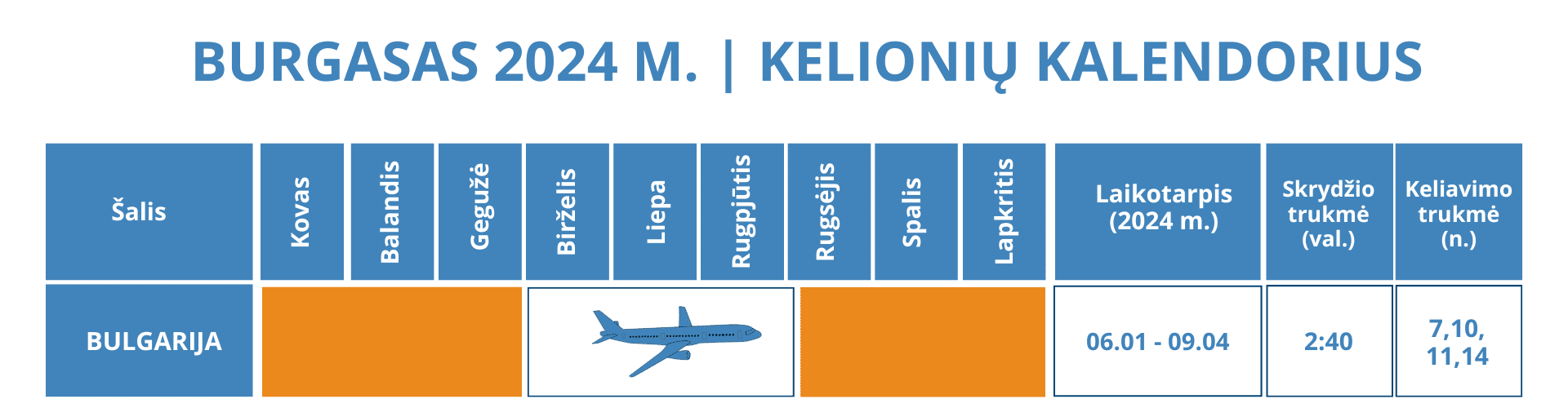 Yra daug privalumų užsakant keliones į Burgasą kitiems metams, o pats didžiausias privalumas – pradinė įmoka – 75 €/asm. Likusi suma apmokama ne vėliau nei likus 21 dienai iki kelionės pradžios.