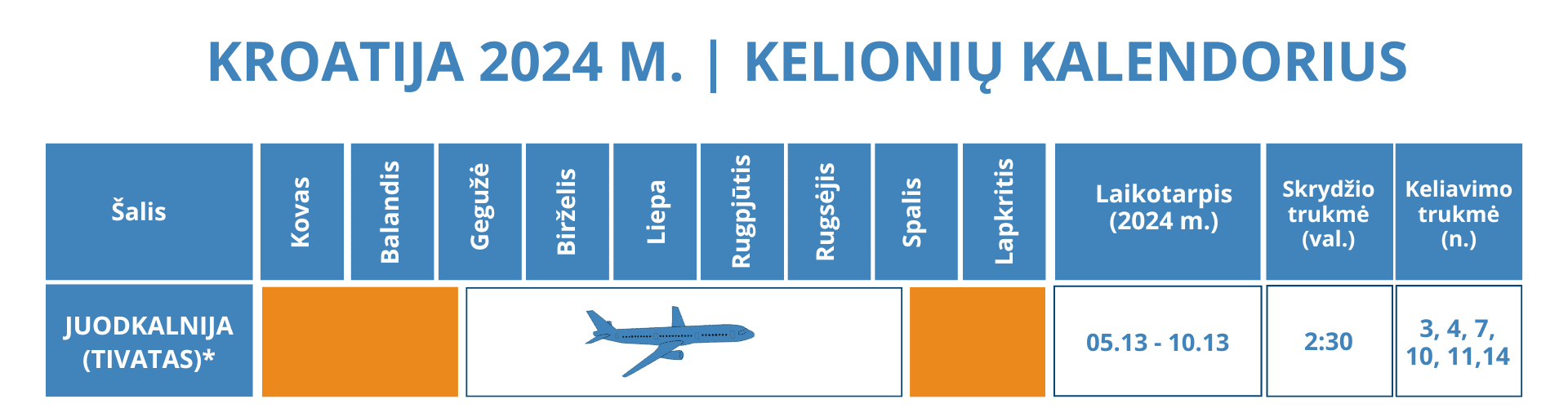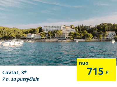 *Atkreipiame dėmesį, kad skrydžiai vykdomi į Tivatą (Juodkalnijoje). Į kelionės kainą jau iskaičiuoti grupiniai pervežimai iš Tivato oro uosto iki pasirinkto viešbučio Kroatijoje.