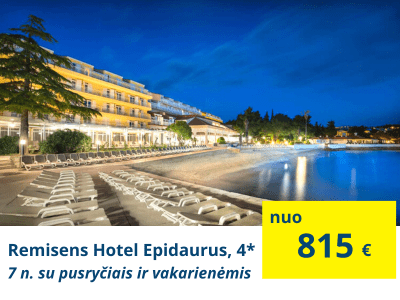TOP VIEŠBUTIS ŠEIMŲ POILSIUIRemisens Hotel Epidaurus, 4* (su pusryčiais ir vakarienėmis)Viešbutis įsikūręs ant jūros kranto, turi tiesioginį priėjimą prie akmenuoto paplūdimio. Viešbutyje yra 2 lauko baseinai su atvira terasa ir gultais. Kambariai yra su oro kondicionieriais, dekoruoti jūrinėmis detalėmis. Kai kuriuose kambariuose yra balkonai su vaizdu į jūrą. Turi mini klubą vaikams, atskirą vaikų baseiną ir šeimyninius kambarius. |
