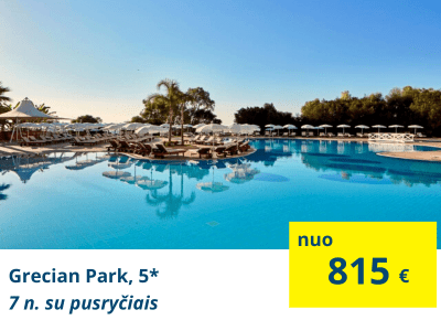 TOP VIEŠBUTIS PORŲ POILSIUIGrecian Park, 5* (su pusryčiais)Puikus viešbutis, įsikūręs pakrantėje tarp Protaro ir Agia Napos kurortų, netoli garsiojo Cape Greco kyšulio. Keliautojai čia puikiai vertina viešbučio personalo aptarnavimą, vakarinius pramoginius šou. |