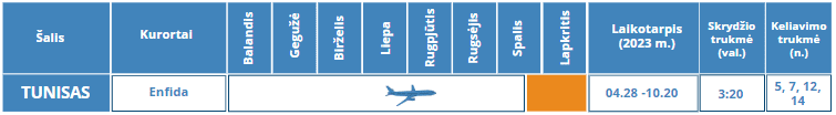 Pateikiame Jums tiesioginių užsakomųjų skrydžių į Tuniso kurortą Enfidą kalendorių.