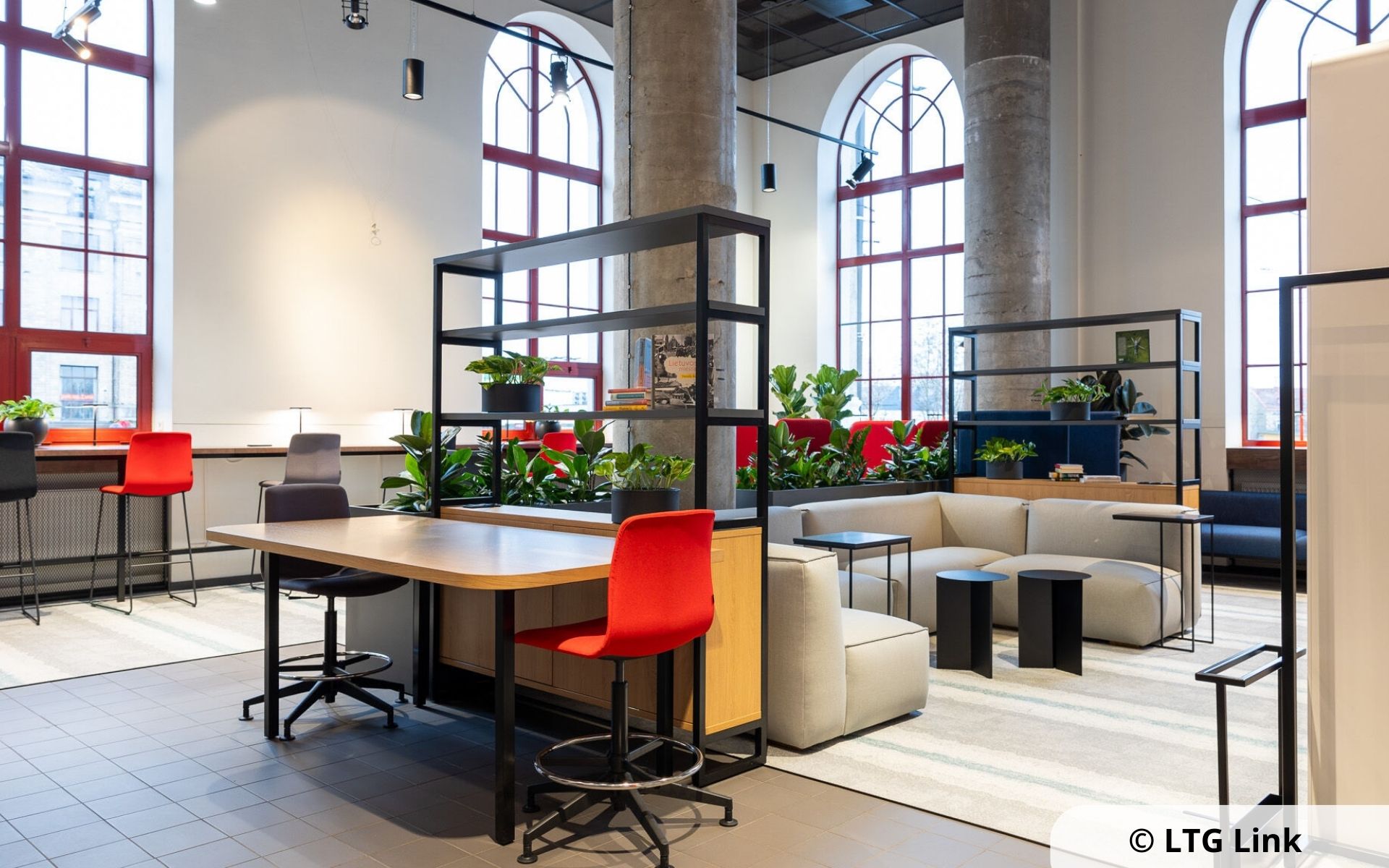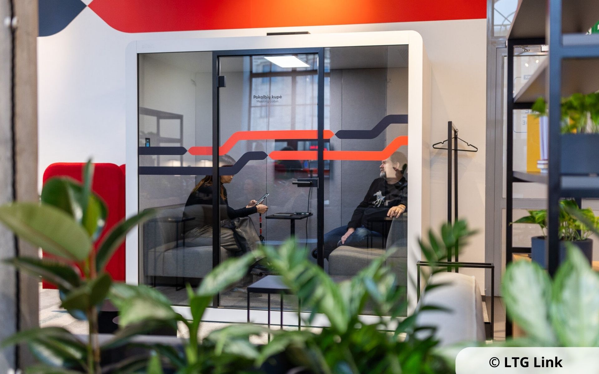 - Norintiems laiką išnaudoti darbui, įrengti patogūs stalai, atskiras susitikimų kambarys, pokalbių erdvė.