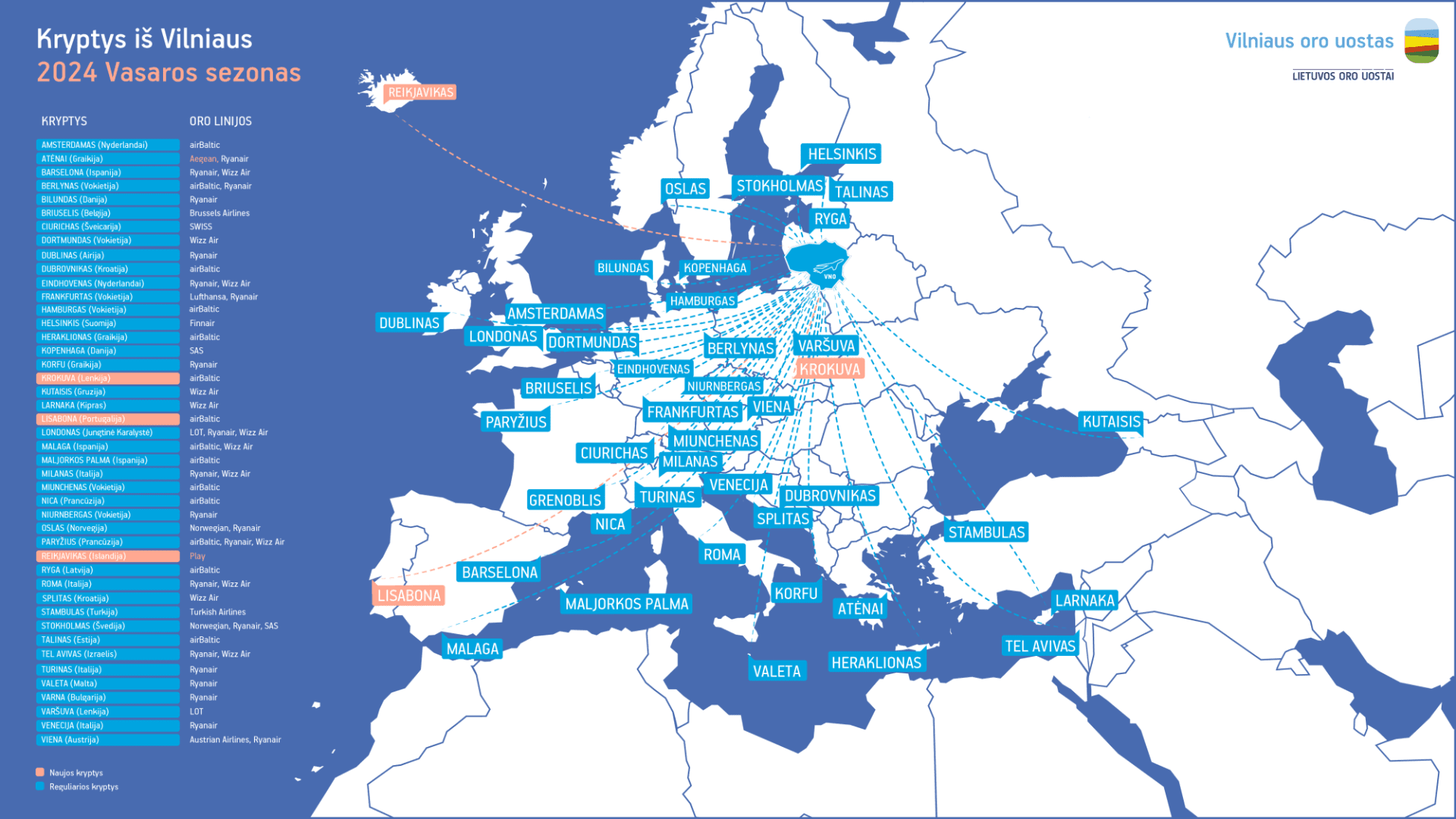 Primename, kad jau įžengėme į aviacinį vasaros sezoną, o kartu su jo pradžia turime džiugių skrydžių naujienų iš Lietuvos. Tiesioginiais reguliariaisiais skrydžiais jau galime džiaugtis į šias kryptis:
