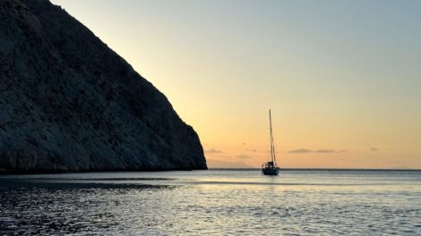 - Sausas klimatas – sala per metus sulaukia tik ~30 cm kritulių (tačiau šiek tiek vėjuočiau, nei kitose Graikijos salose).