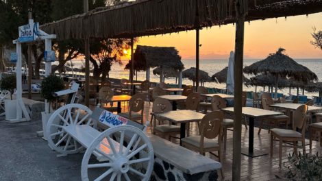 - Perisos – puikus variantas-auksinis viduriukas tarp populiariausių Santorini miestelių. Viešbučių galima rasti pačio įvairiausio biudžeto, tiek prabangių, tiek vidutiniam biudžetui, yra rytinėje salos dalyje kur mažiau vėjo, čia rečiau užklysta keliautojai, todėl yra daugiau jaukumo, privatumo. Būtent šiame miestelyje labiausiai rekomenduoja apsistoti Žydrė. Puikus variantas šiame miestelyje yra prie pat jūros – įsikūręs viešbutis 5* Aqua Blue.