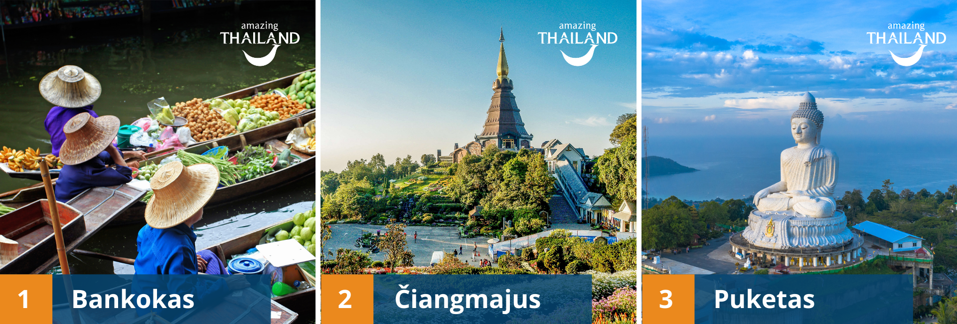 Tailandas – neretai dar vadinamas tūkstančio šypsenų šalimi. O Tailando lankytinos vietos – įspūdingos ir kontrastingos: nuo šiuolaikiškų dangoraižių iki šimtmečius skaičiuojančių šventyklų, nuo šurmuliuojančių turgaviečių iki ramybe alsuojančių atokių gamtos kampelių. O kur dar pasakiško grožio paplūdimiai, įstabaus skonio maistas. Ne veltui Tailandas jau ne vienerius metus karaliauja egzotinių kelionių topuose. Šiltas tropinis klimatas, žemos kainos, puikiausi viešbučiai, nuostabus maistas ir autentiška azijiečių kultūra palieka įspūdį kiekvienam. Aplinkinės salos – pasakiško grožio ir vertos kiekvieno egzotiško poilsio gerbėjo dėmesio. Jeigu galvojate apie kelionę į Tailandą, šiame blogo įraše pristatome Jums TOP vietas Tailande, kurias verta įsitraukti lankytinų vietų sąrašą.