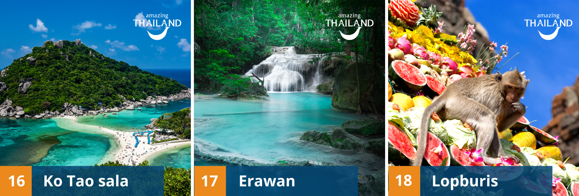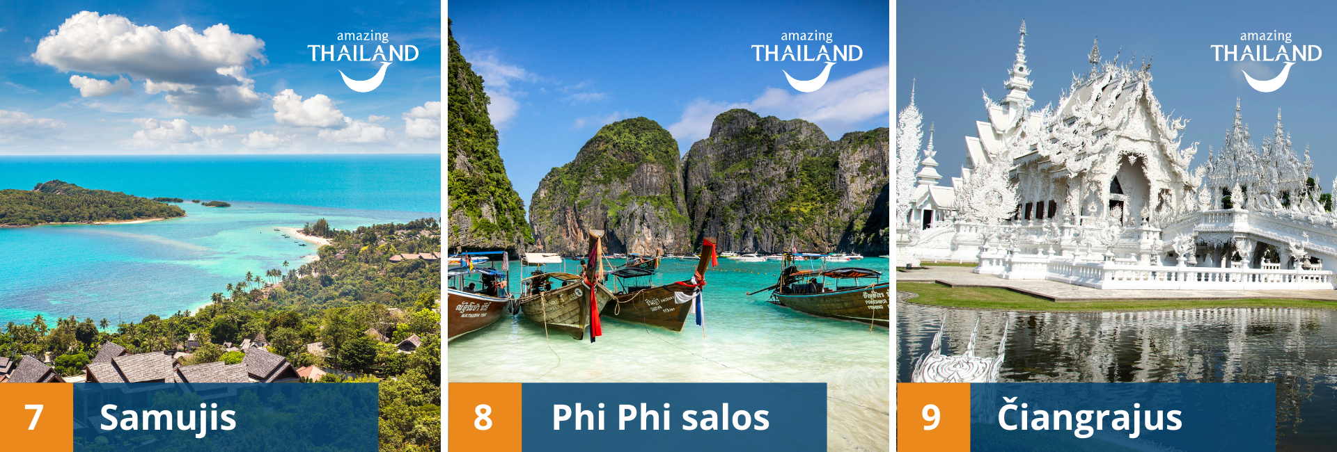 - Ko Tao sala – pasižyminti unikalia vietos istorija, įspūdingu povandeniniu pasauliu ir nuostabiais paplūdimiais. Ji itin pamėgta nardymo entuziastų ir vakarėlių mėgėjų.