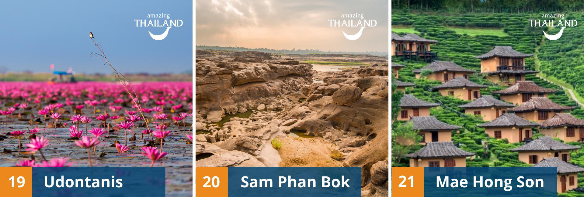 - Sam Phan Bok – Tailando „Didysis kanjonas“ su unikaliais uolų dariniais.