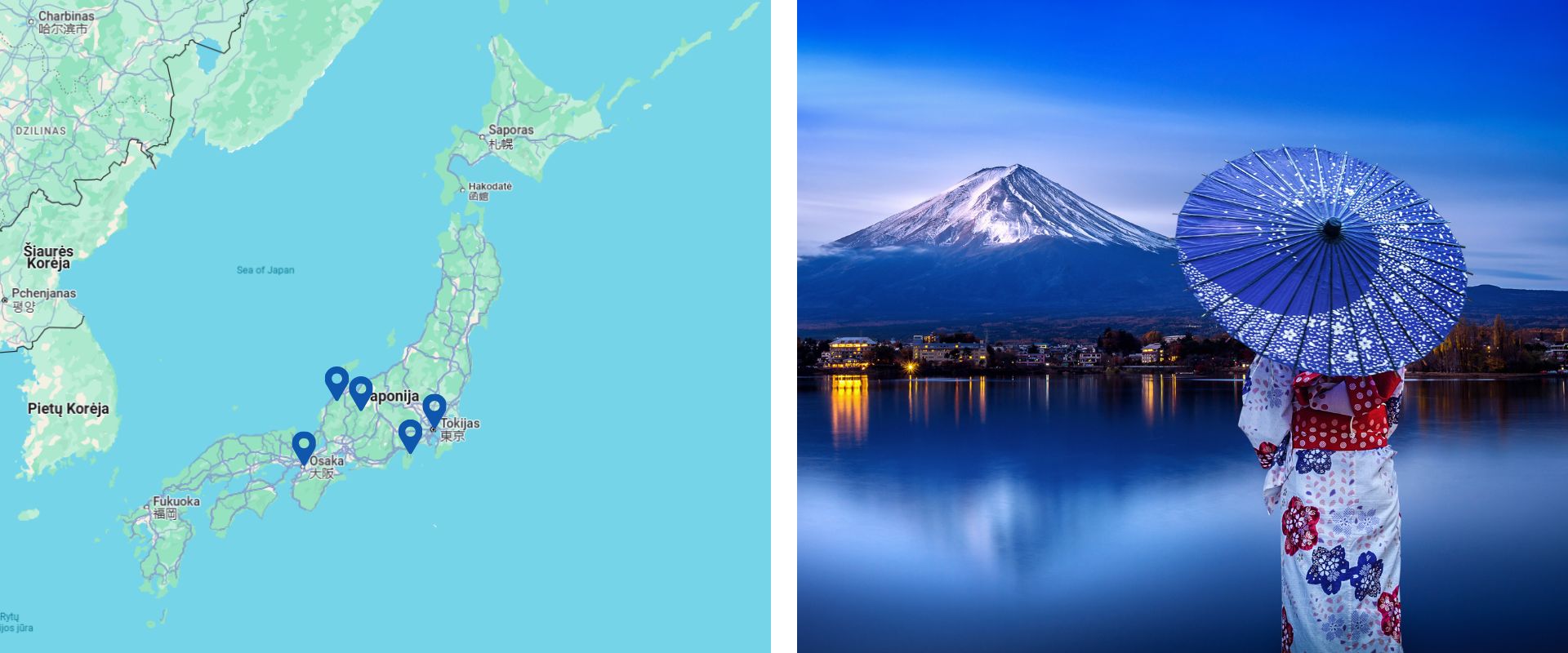 - Pamatysite įspūdingiausius Japonijos miestus – Tokiją, Niko, Hakonę, Kijotą, Hirošimą ir Osaką, kur kartu apsilankysite pasaulinėje parodoje EXPO Osakos mieste, kur dalyvaujančios įvairios pasaulio šalys turi progą pristatyti save organizatorių parinktos temos kontekste. Pagrindinė parodos tema – „Ateities visuomenės kūrimas mūsų gyvenimui“.