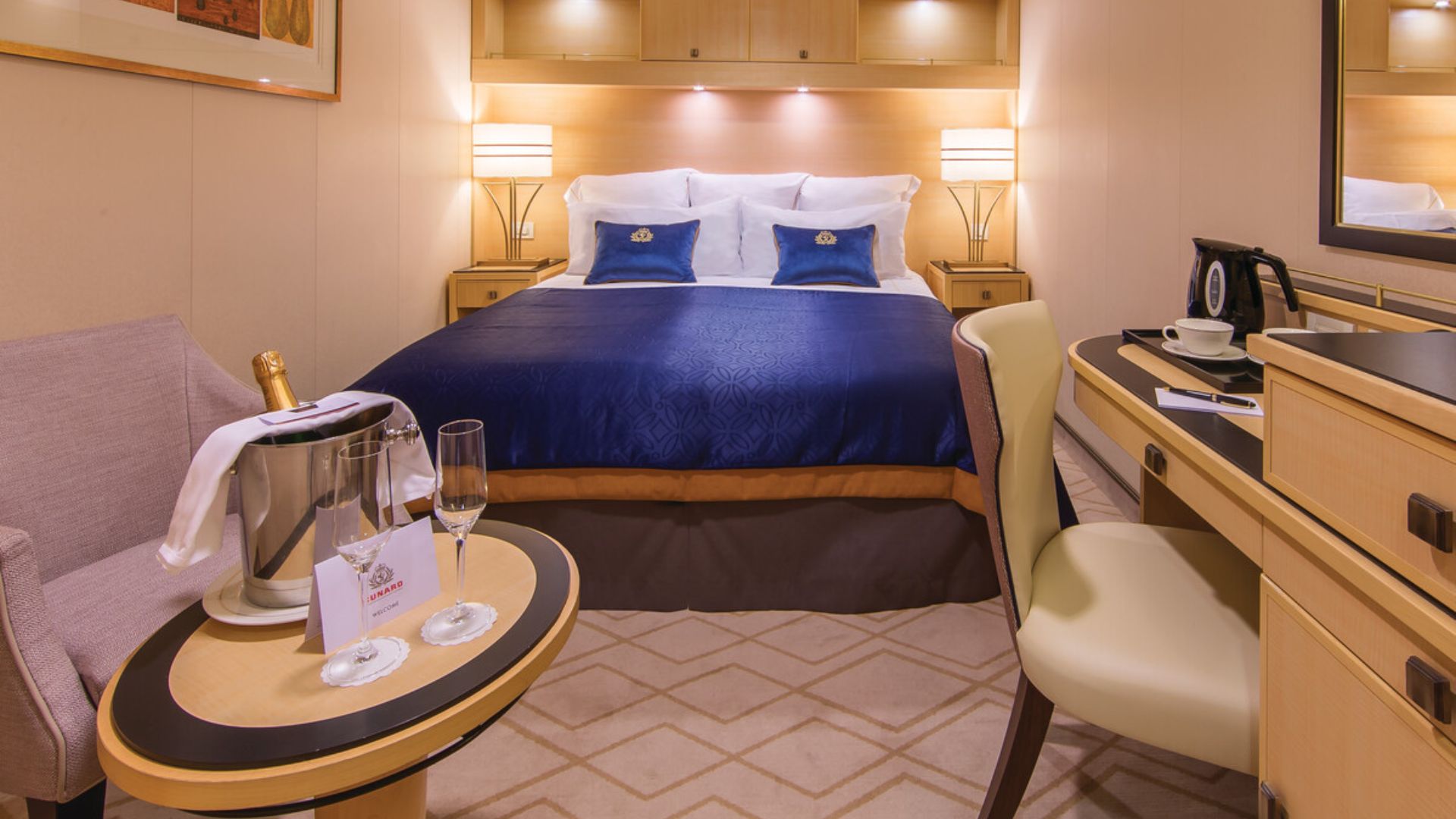 Laive Queen Mary 2 galima pasirinkti įvairių tipų kajutes – nuo pačių paprasčiausių iki prabangių apartamentų tipo: