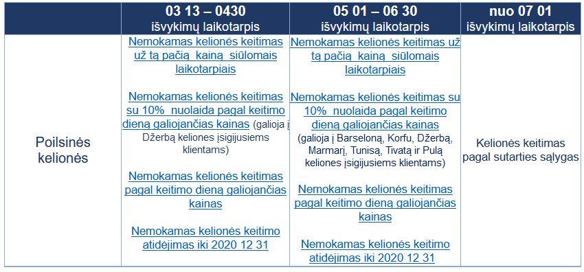 Keliautojams, užsakiusiems „Novaturo“ poilsines, pažintines ir egzotines keliones, suteikiamos galimybės keisti kelionę. Klientai gali pasikeisti savo kelionės planus pagal klientų numatytus išvykimo laikotarpius.