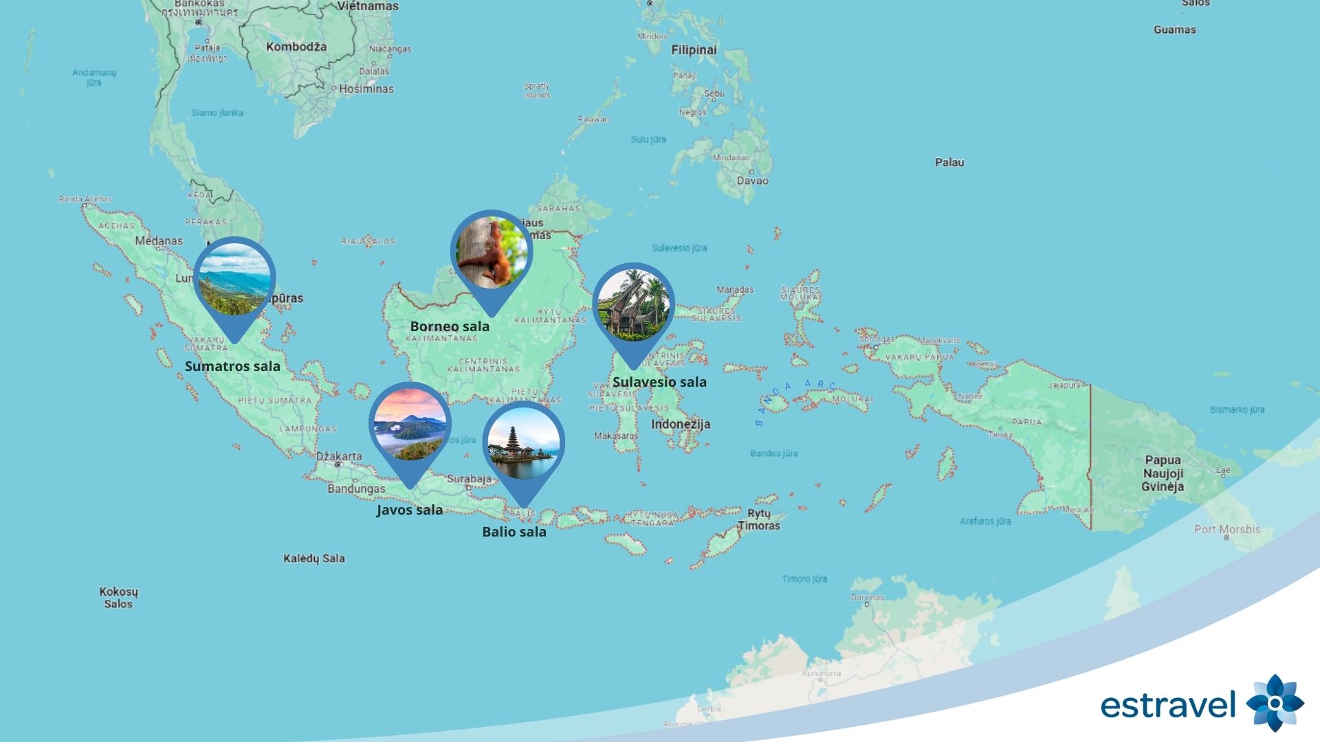 Skrydis su persėdimu į Indoneziją iš Vilniaus trunka ~17 val. Dėl geriausios skrydžių jungties pagal Jūsų kelionės datą teiraukitės Estravel kelionių konsultanto.