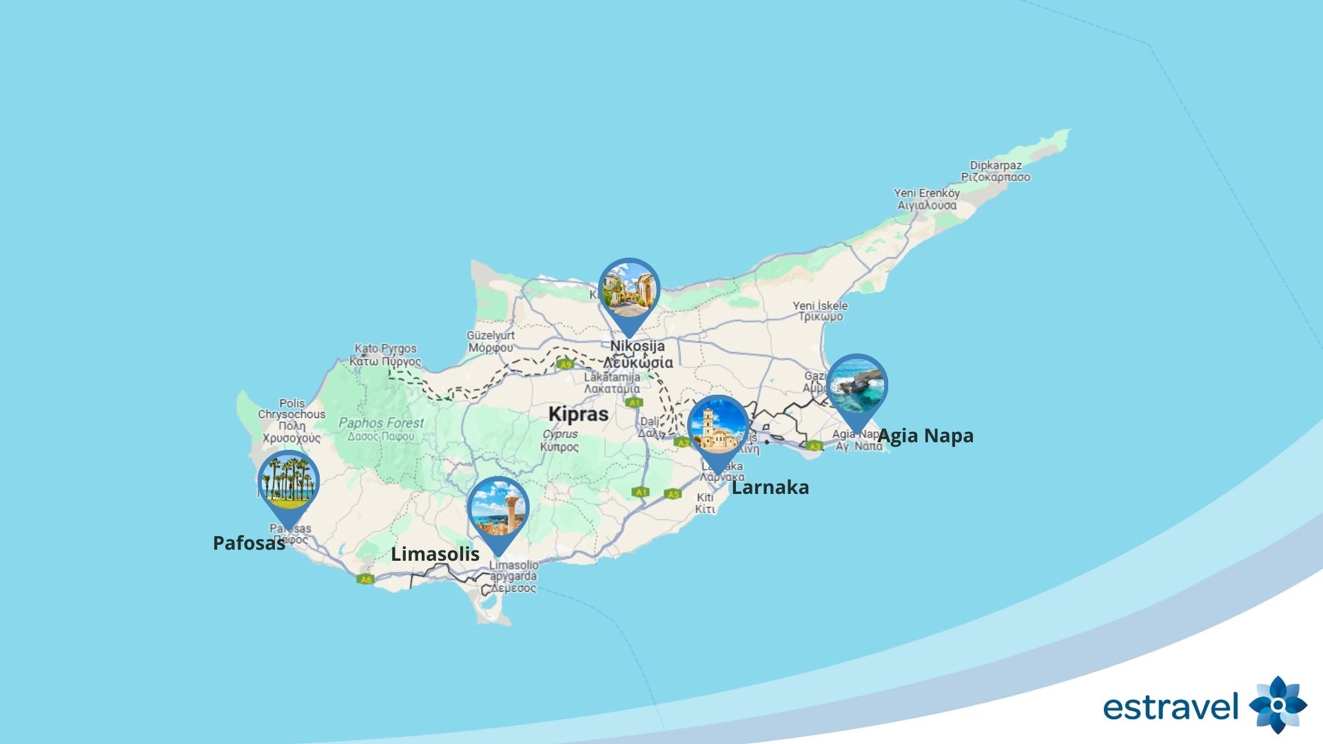 Kelionės į Kiprą – istorišką, saulėtą ir be galo įdomų Viduržemio rojų! Tai trečia pagal dydį sala Viduržemio jūroje, kurią renkasi tie keliautojai, kurie nori ne tik poilsio prie smelėtų paplūdimių ir žydros jūros, bet ir turtingos salos istorijos bei kultūros pažinimo. Dažnas keliautojas į Kiprą vyksta ir meilės ieškoti – ši sala yra grožio ir meilės deivės Afroditės gimtinė. Be to, Kipro sostinė Nikosija yra vienintelė sostinė pasaulyje, kurią valstybinė siena dalija perpus: pietinę – graikišką ir šiaurinę – turkišką.