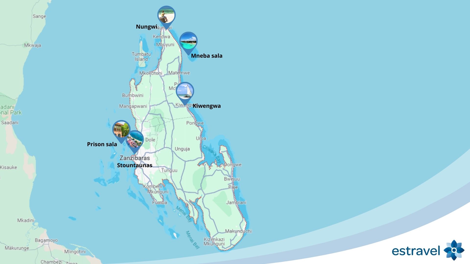 - Pongwi paplūdimys: baltas smėlis, ryškiai žydros vandens spalvos ir Indijos vandenyno bangos puikiai tiks norintiems visapusiškai atsipalaiduoti ir pasimėgauti atostogomis. Vakare kviečiame pasitikti saulėlydį prie seniausio salos švyturio Ras Nungwi.
